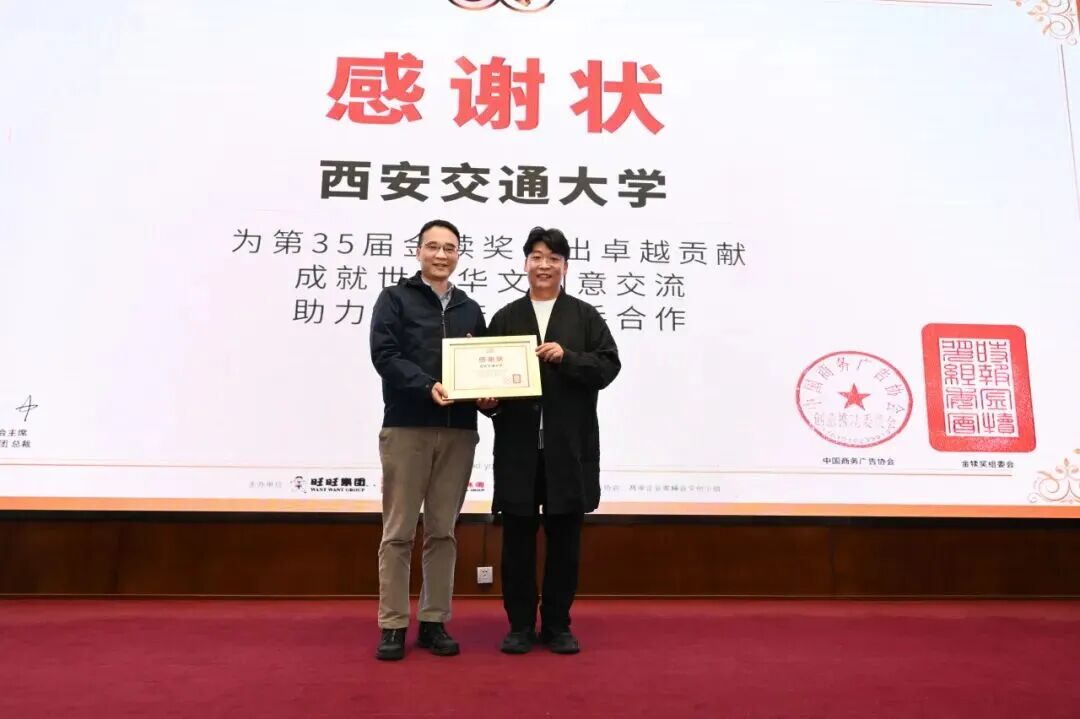 勾当场外,周智秘书长向西安交通大学颁布感激状,第35届金犊西安交通大学分享会落幕,努力于摸索产学研深度融合的实践径,金犊累计吸引超万万师生参取,大师就创意构想、评审尺度、市场逻辑等环节问题向薛教员发问。创意重生”的思惟盛宴,青年创做者更要打破思维定式,